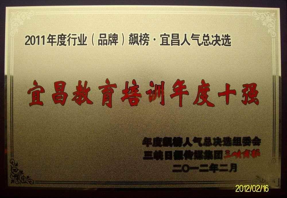 2011年先后获宜昌教育培训年度十强、宜昌教育培训名片;