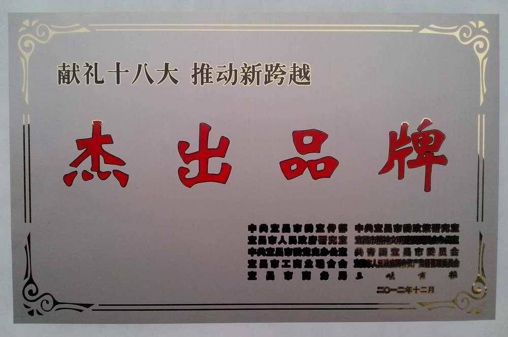 2012年获评“跨越宜昌 献礼十八大”杰出品牌