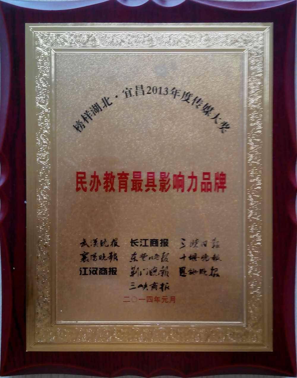 2011年获评“教育行业年度飙榜•宜昌人气总决选”十大品牌;